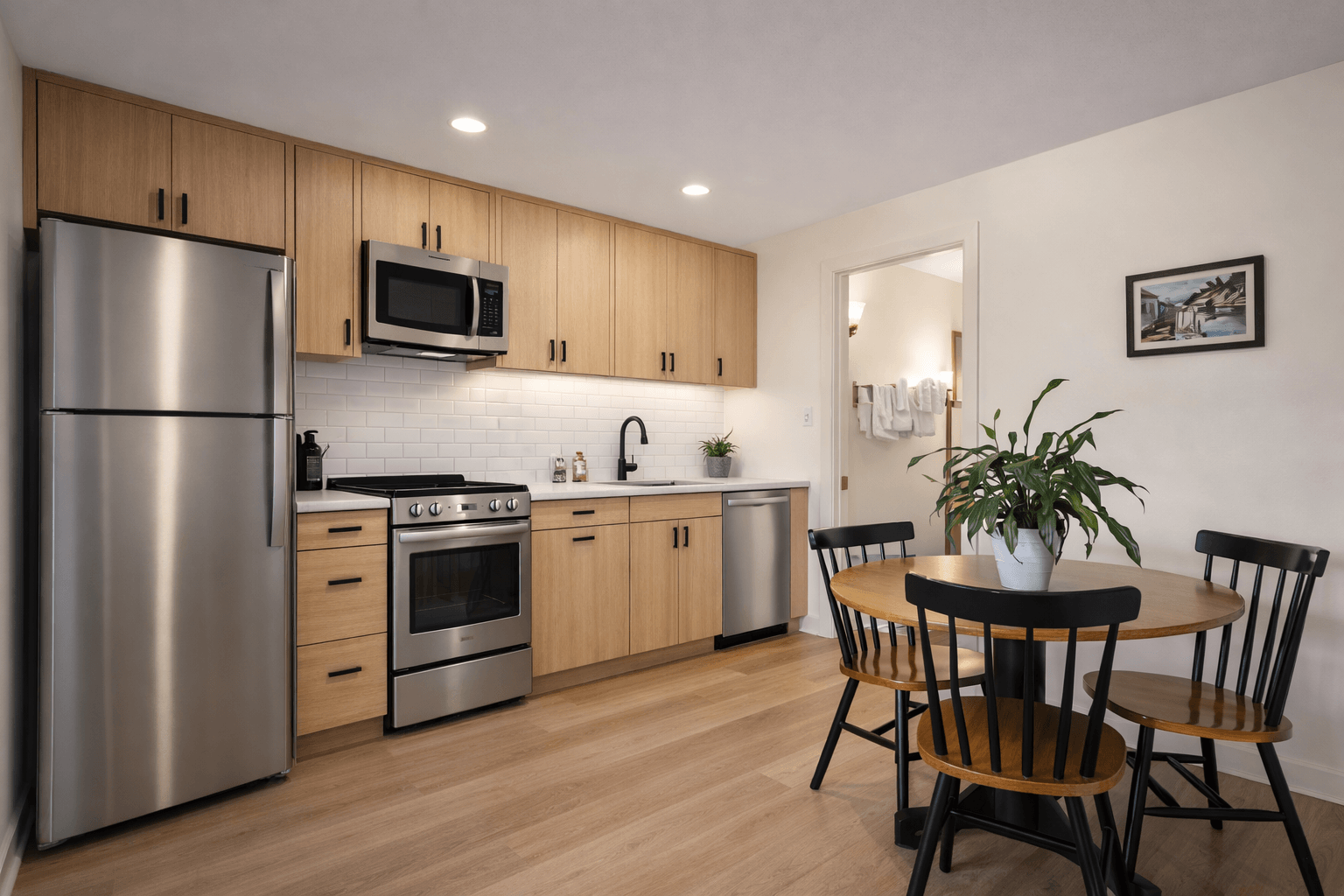 Motel-to-apartment unit conversions throughout the hospitality wing. Modern kitchen and bath updates, new flooring, lighting, and hardware across all 52 units.